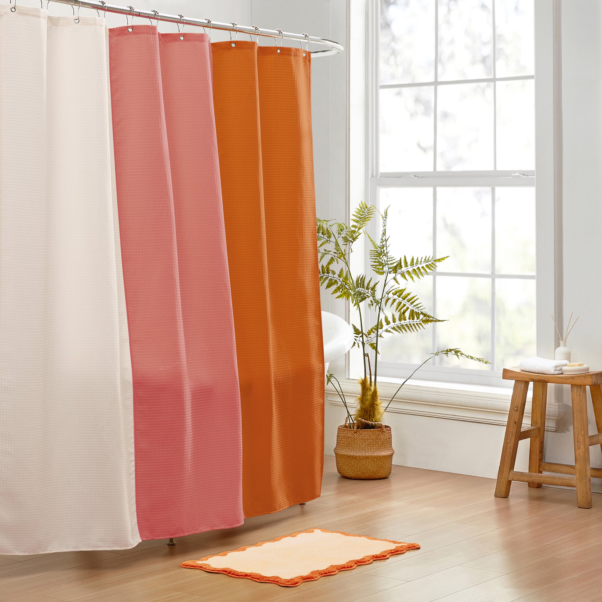 SIGNATURE SHOWER CURTAIN: This colorful color block shower curtain makes a bold statement, making your bathroom brighter and cleaner. Our top quality shower curtain keeps water contained and your floor dry and clean! This curtain will transform your shower into an elegant modern spa!
