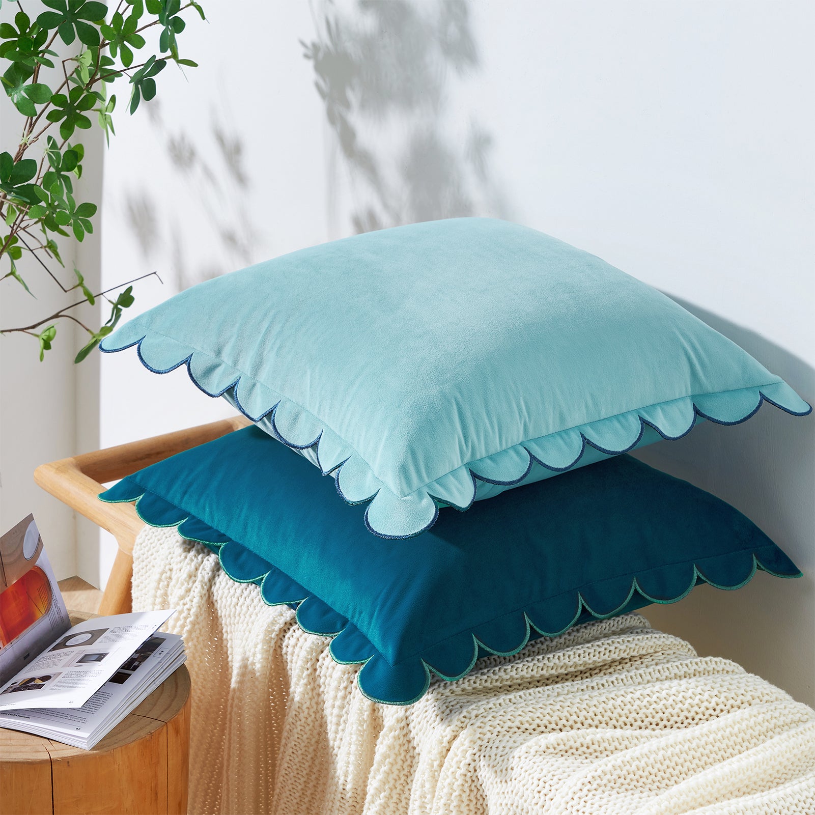 - PREMIUM QUALITY: Soft to the touch and comfortable to lay on. Strong chain stitches and color coordinated zipper with wide opening allows easy insertion of filling. The scalloped edge enables them to hold in shape