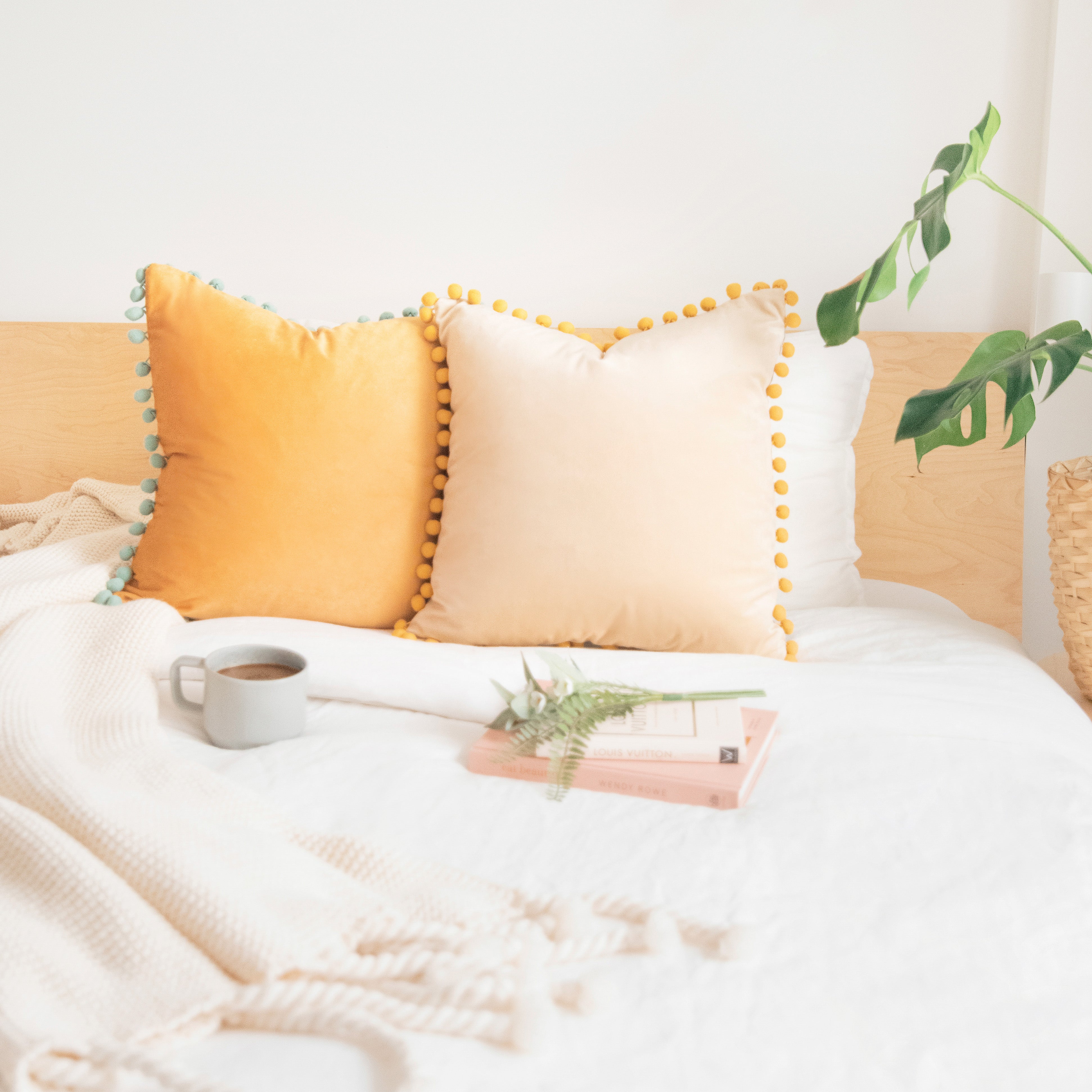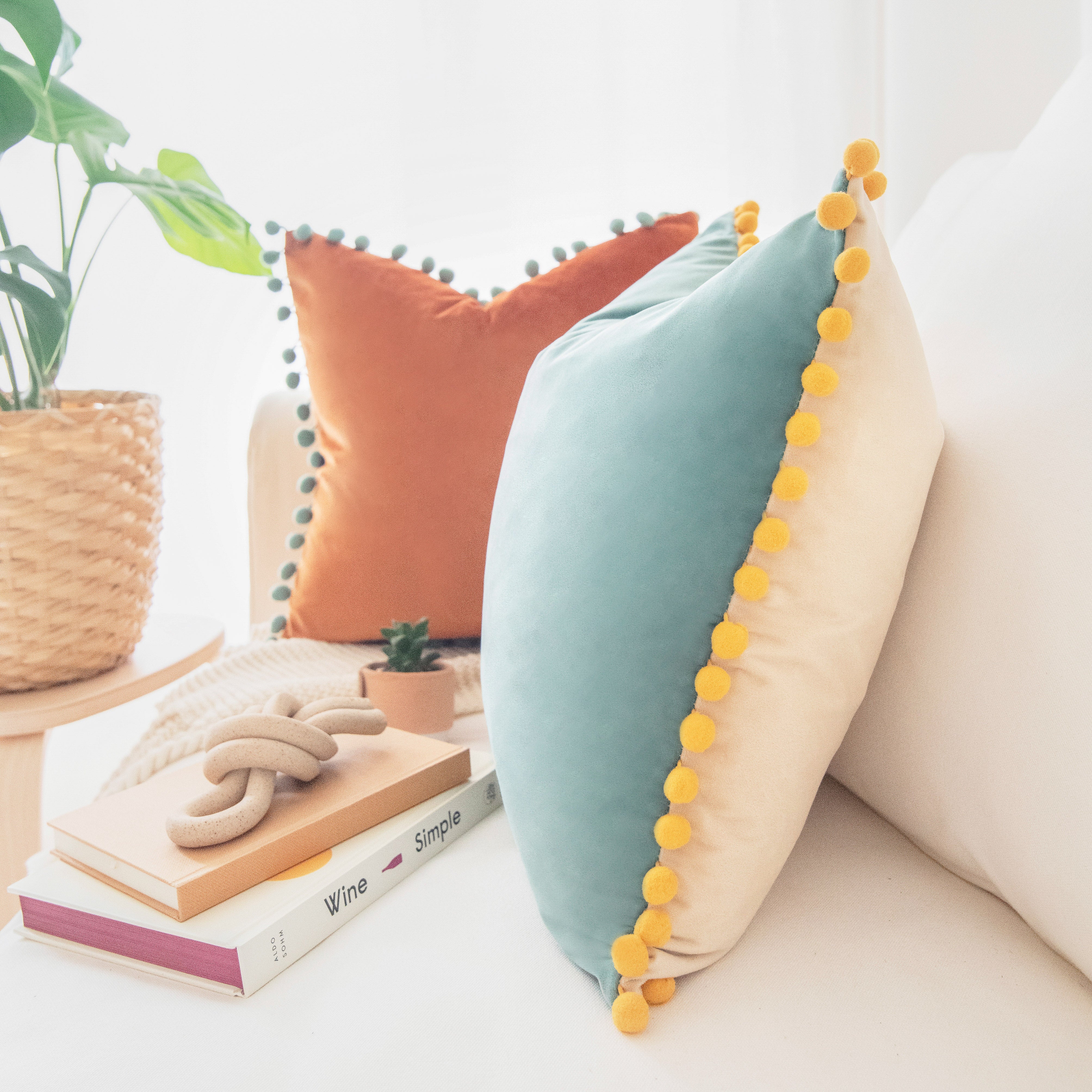 - PREMIUM QUALITY: Soft to the touch and comfortable to lay on. Strong chain stitches and color coordinated hidden zipper with wide opening allows easy insertion of filling. The pom pom edge enables them to hold in shape