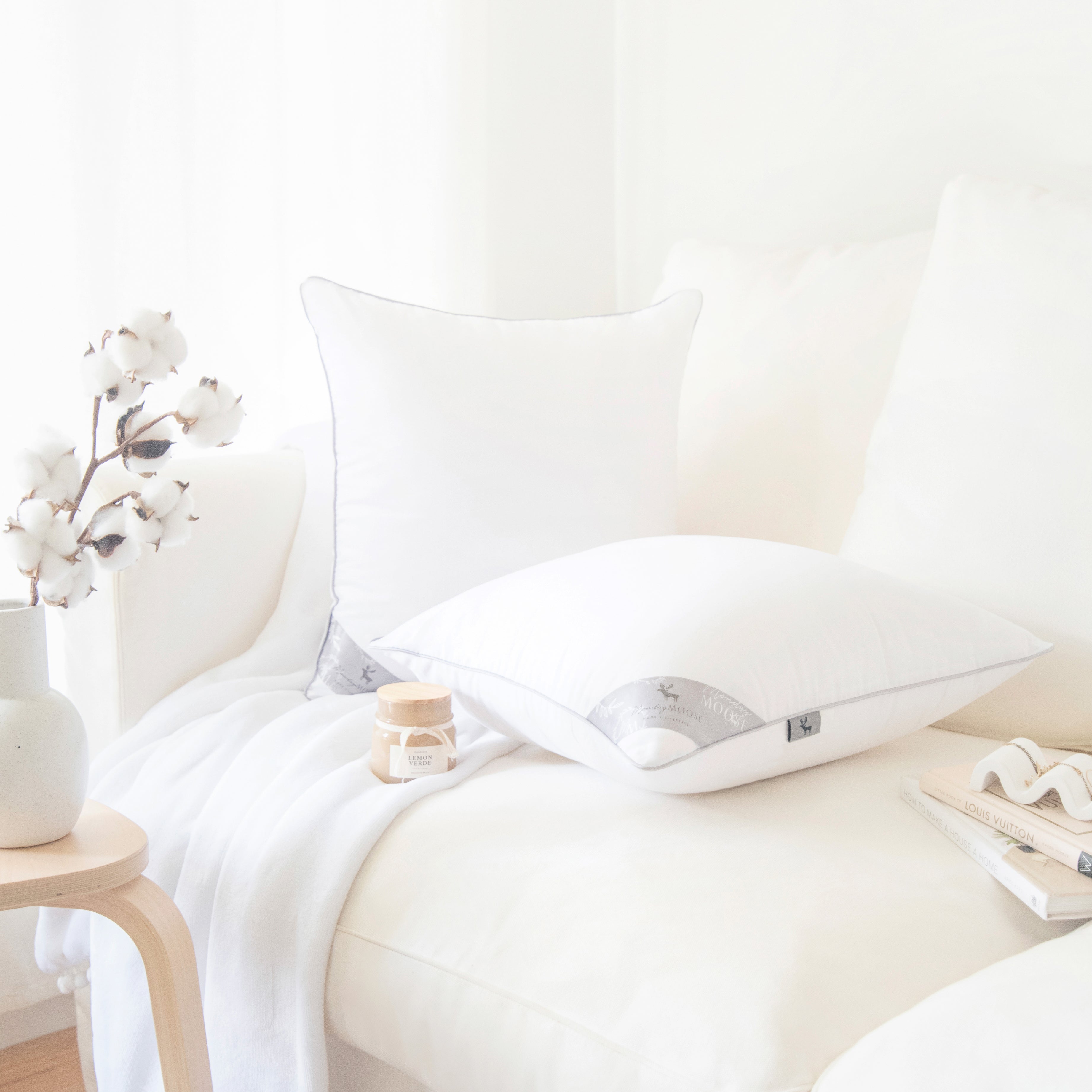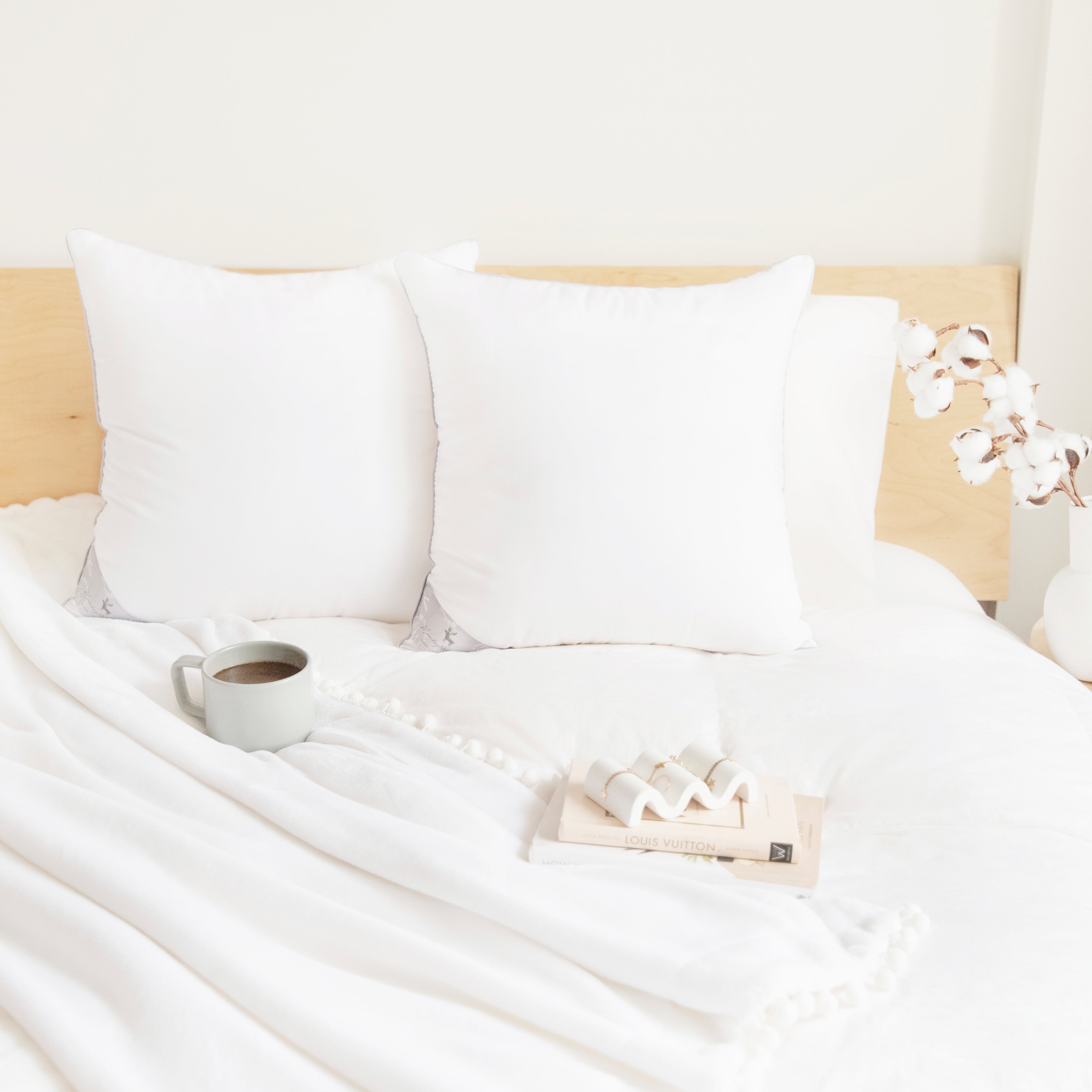 SET OF 2: Includes (2) pillow inserts. Built with a 100% soft microfiber cover with a side zipper and 3D premium polyester filling