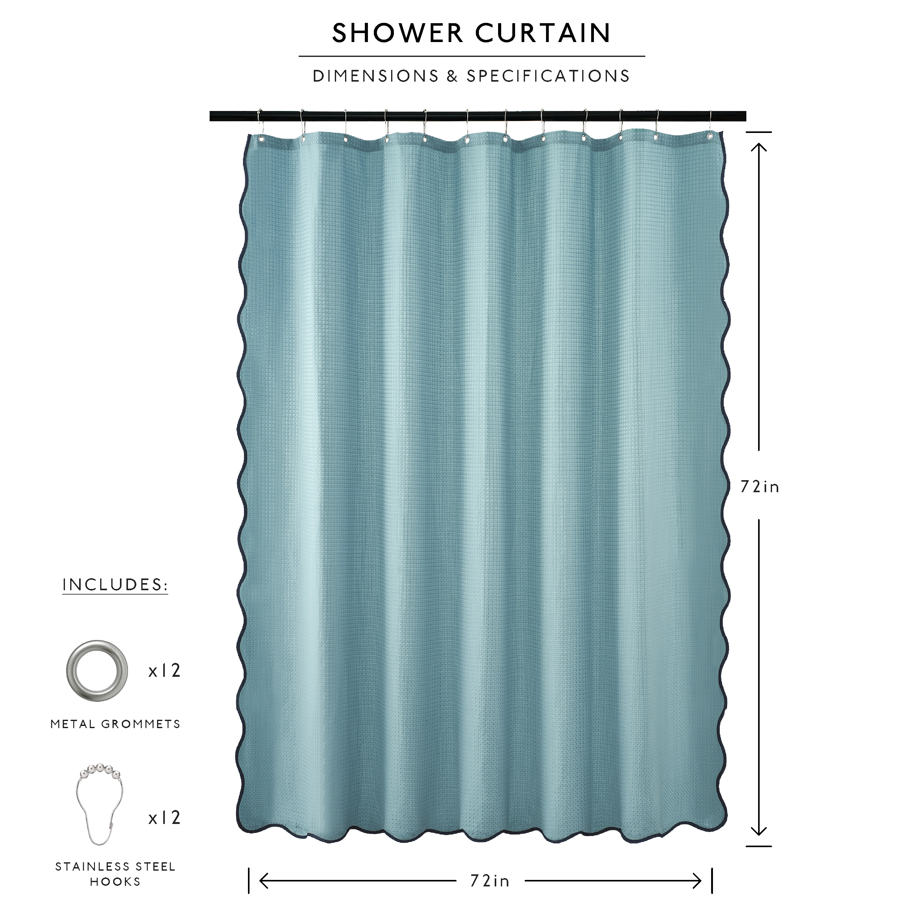 SIGNATURE SHOWER CURTAIN: This colorful scalloped shower curtain makes a bold statement, making your bathroom brighter and cleaner. Our top quality shower curtain keeps water contained and your floor dry and clean! This curtain will transform your shower into an elegant modern spa!