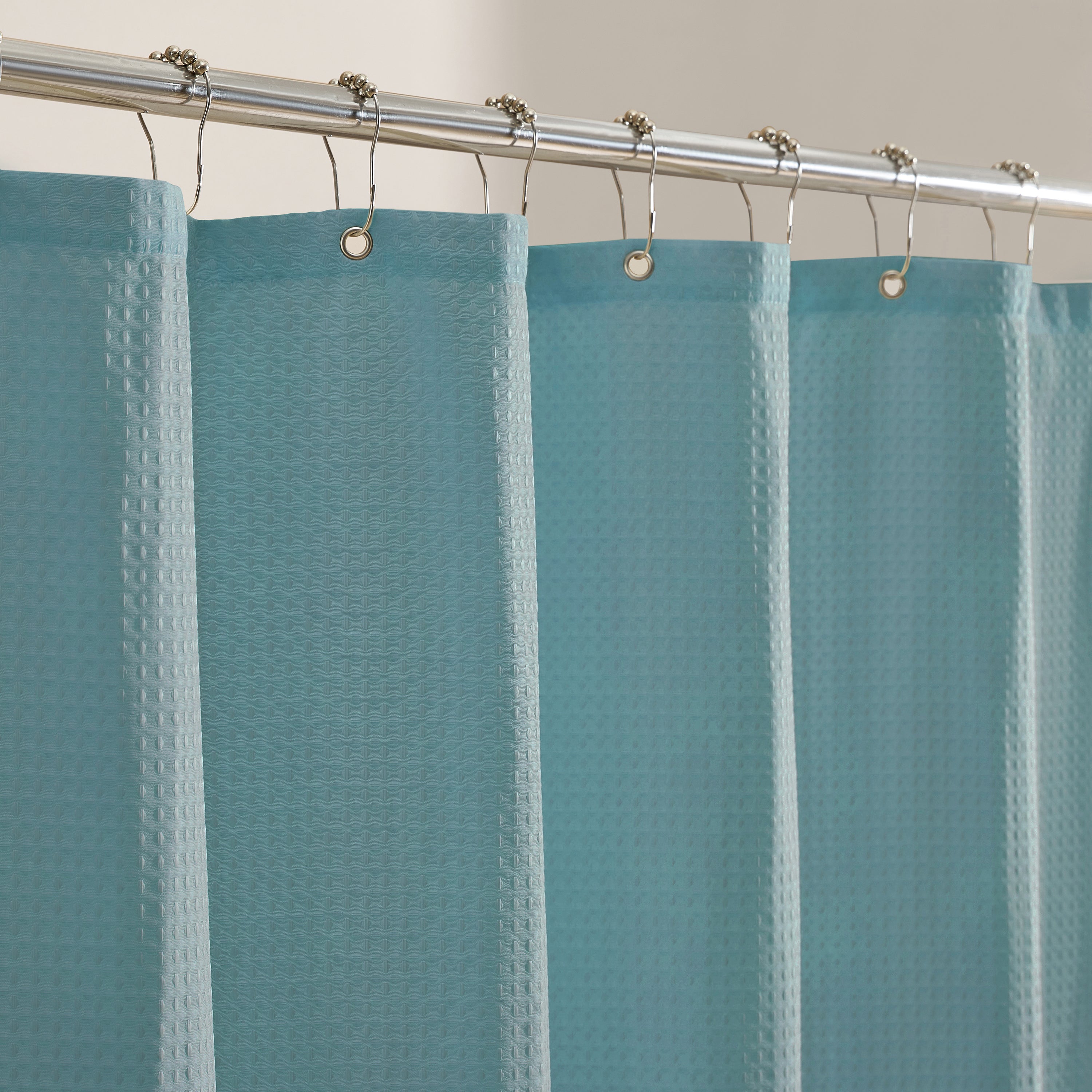 PREMIUM QUALITY: Beautiful honeycomb waffle weave pattern featuring 12 rust resistant buttonholes for easy hanging and long-lasting use. Thick and heavy polyester fabric (230GSM) keeps it in place while showering