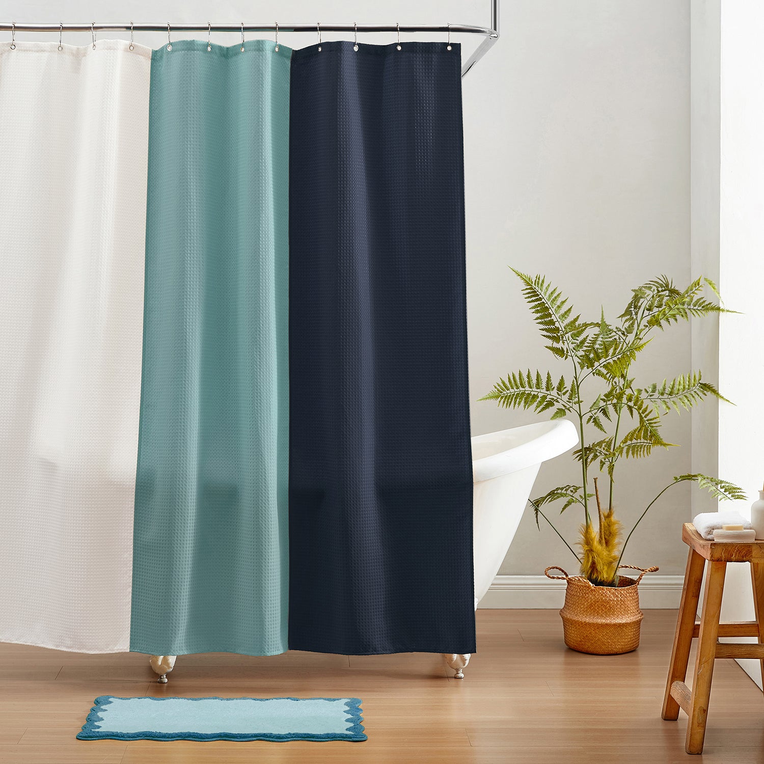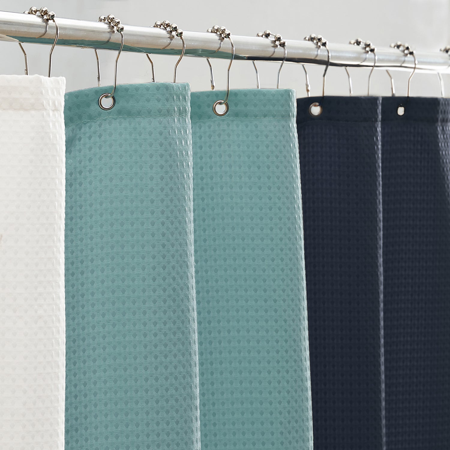 PREMIUM QUALITY: Beautiful honeycomb waffle weave pattern featuring 12 rust resistant buttonholes for easy hanging and long-lasting use. Thick and heavy polyester fabric (230GSM) keeps it in place while showering