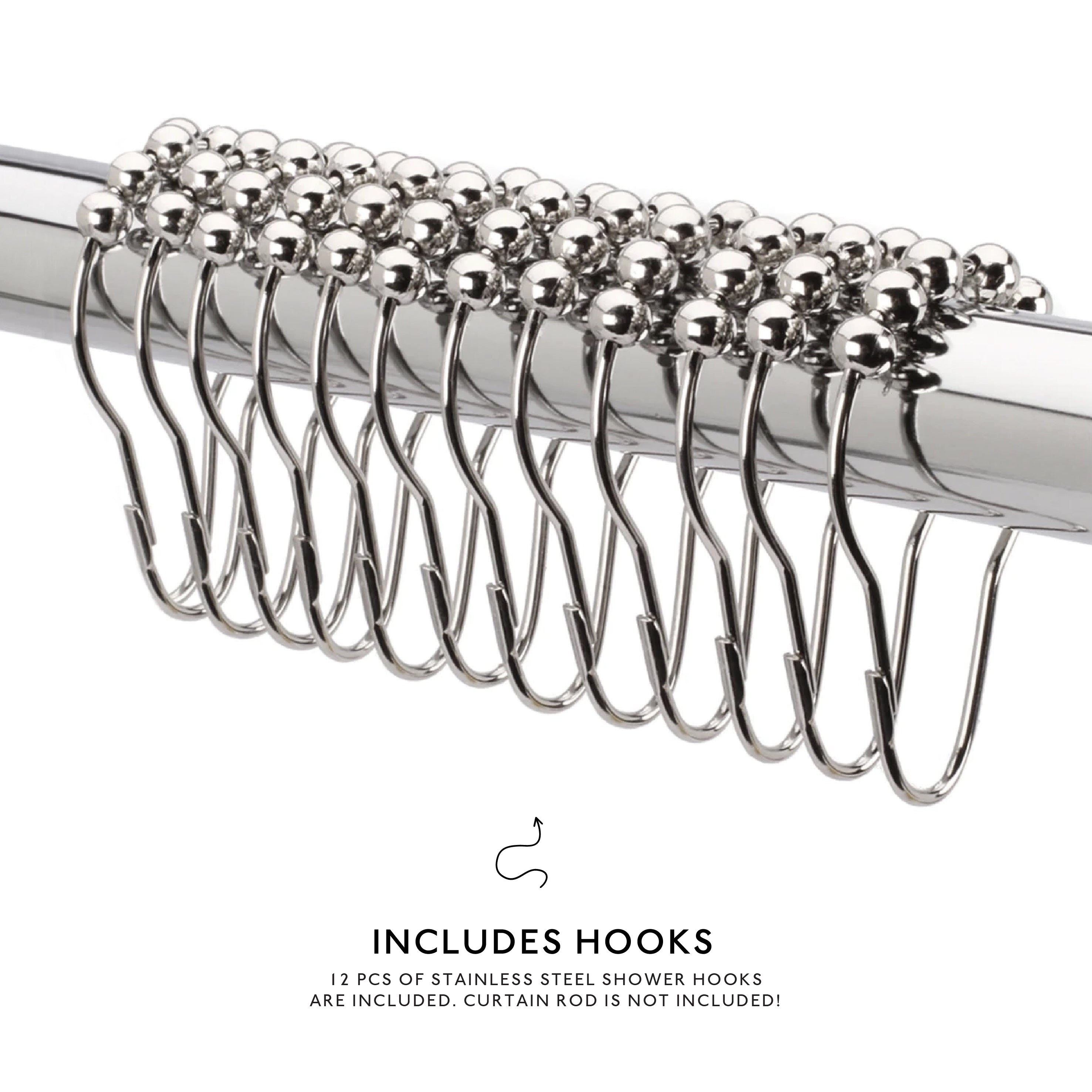 SPECIFICATIONS: Includes (1) premium 100% polyester shower curtain with elegant metal grommet holes + (12) stainless steel hooks. Color may appear more or less saturated depending on drape and light in your space