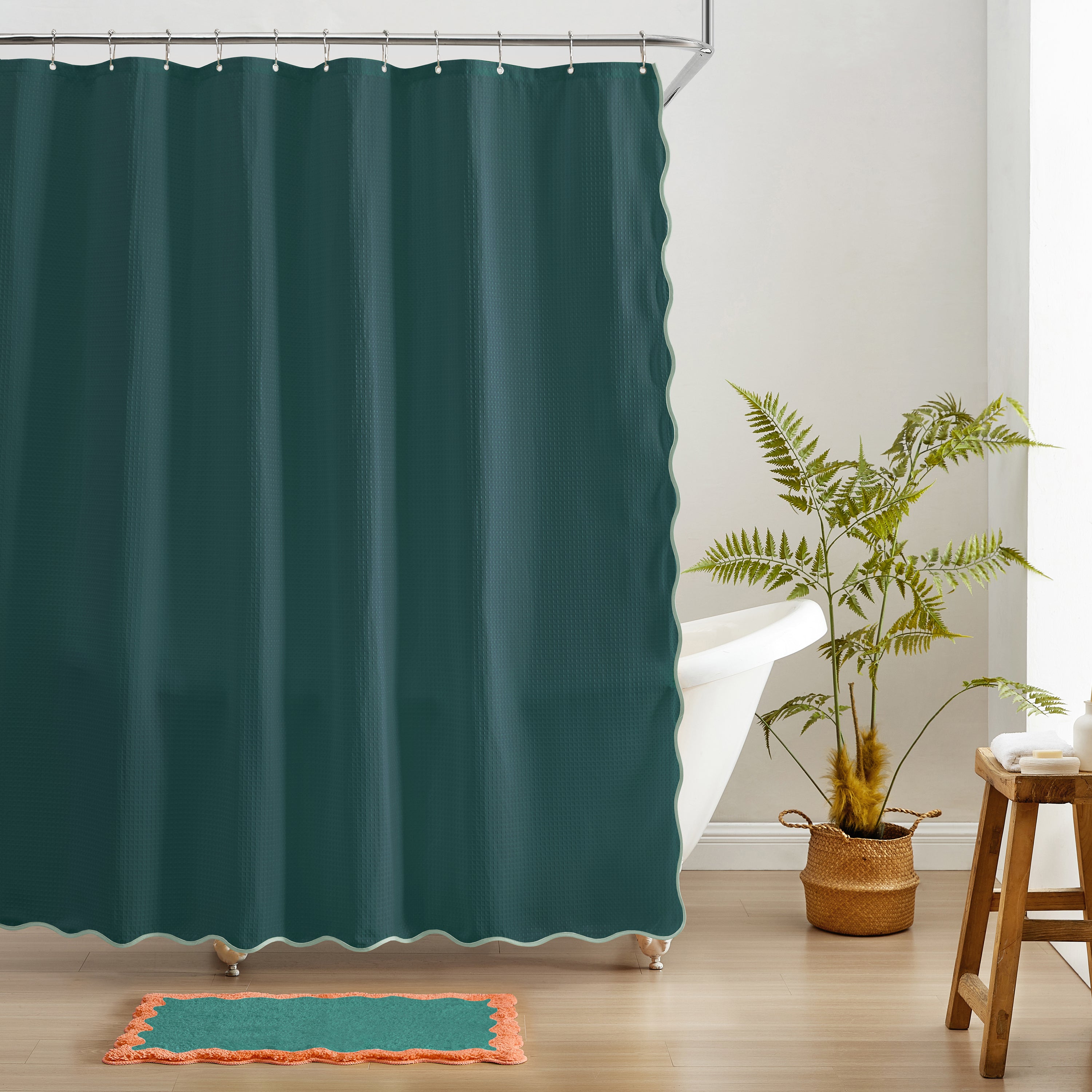 SIGNATURE SHOWER CURTAIN: This colorful scalloped shower curtain makes a bold statement, making your bathroom brighter and cleaner. Our top quality shower curtain keeps water contained and your floor dry and clean! This curtain will transform your shower into an elegant modern spa!