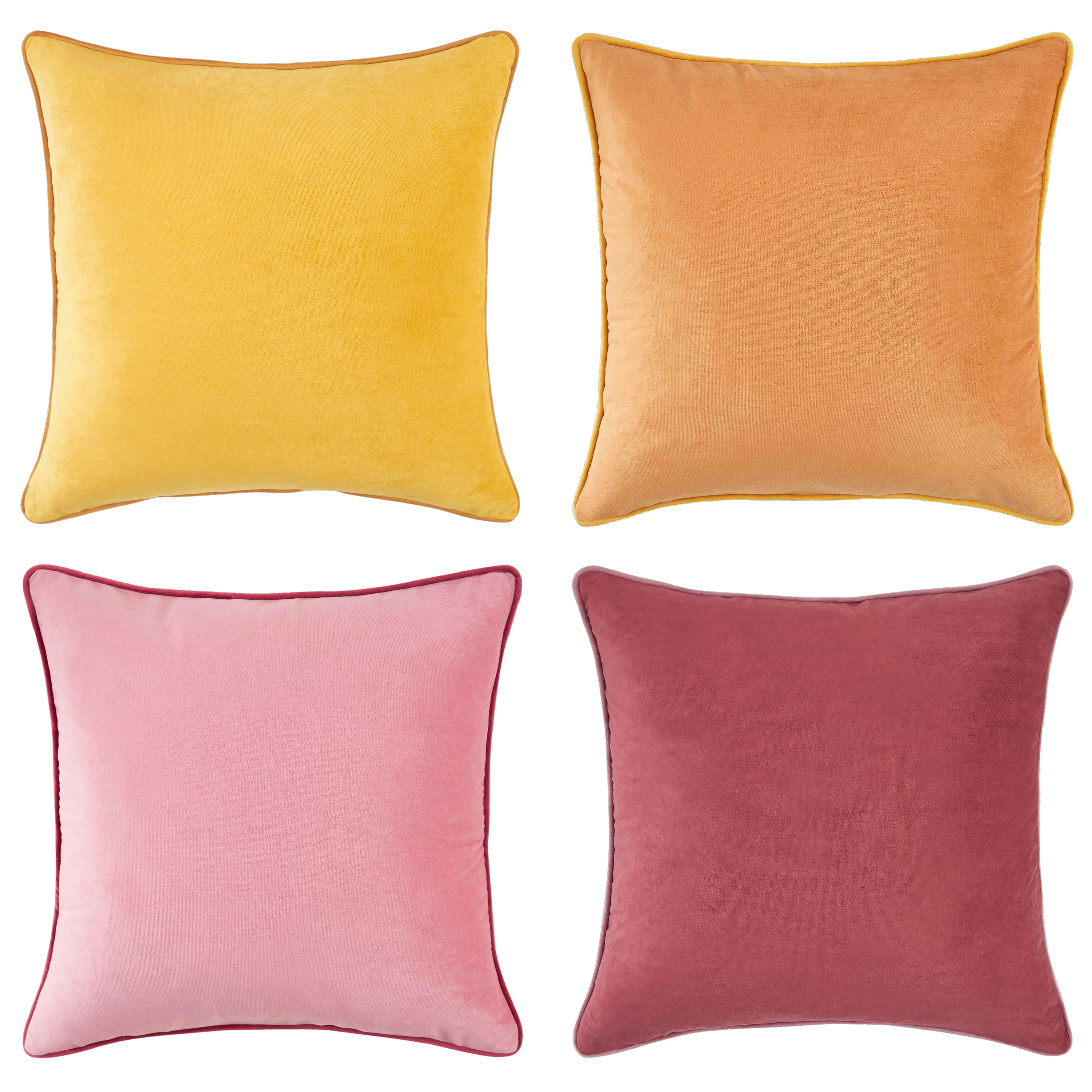 - SET OF 4: Includes 1 bright yellow velvet pillow + 1 honey yellow velvet pillow + 1 pink velvet pillow + 1 pink ochre velvet pillow