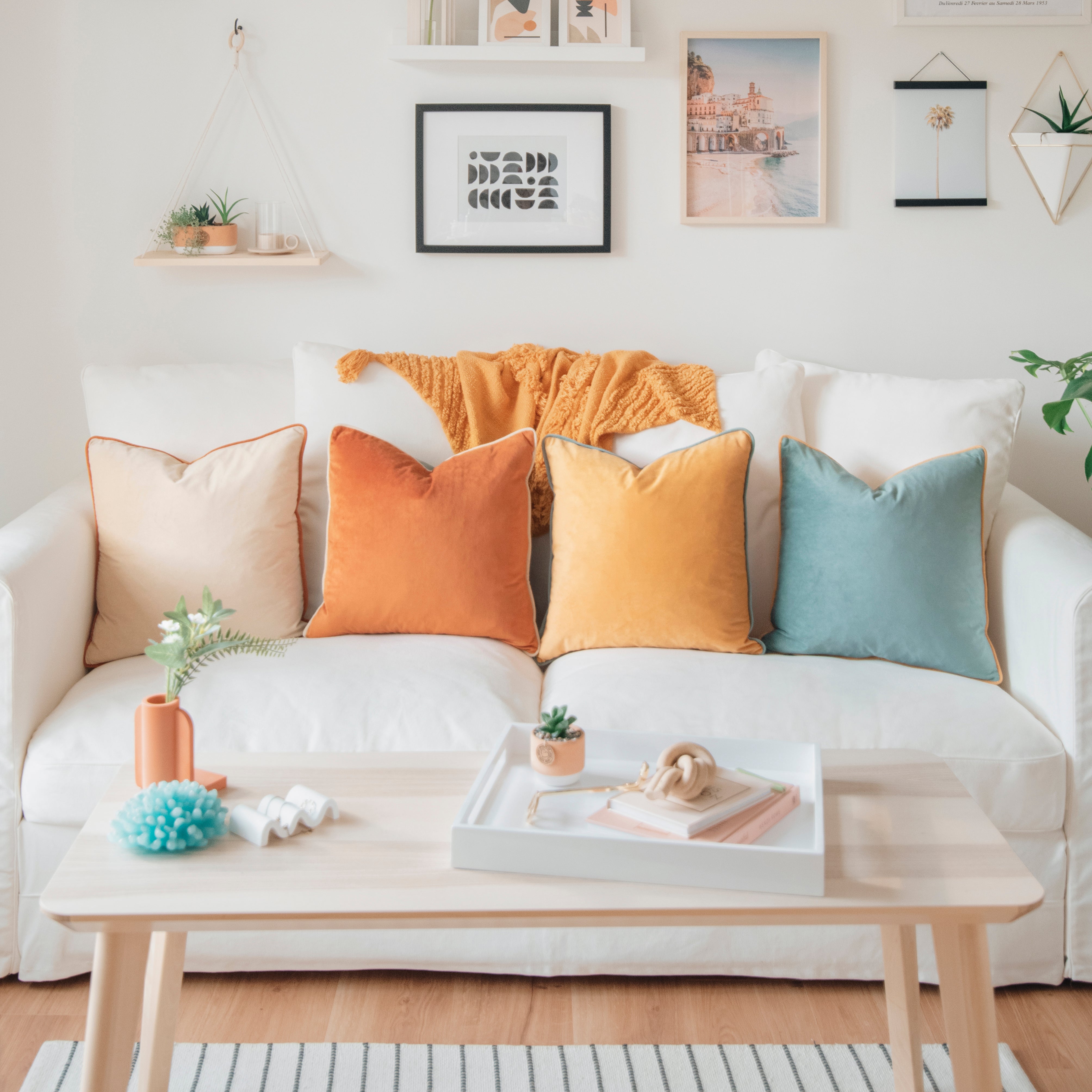 - SET OF 4: Includes 1 beige velvet pillow + 1 teal velvet pillow + 1 yellow velvet pillow + 1 orange velvet pillow