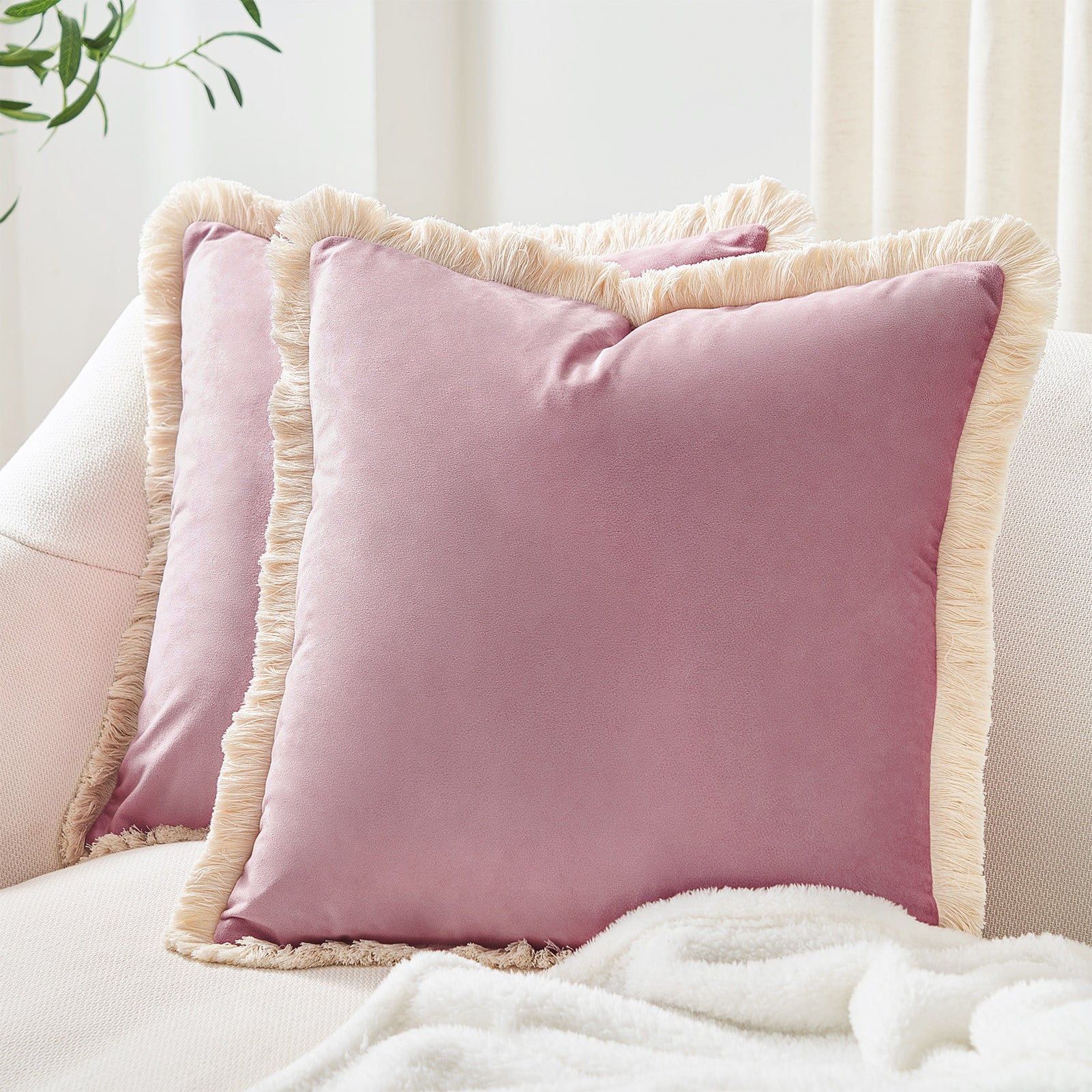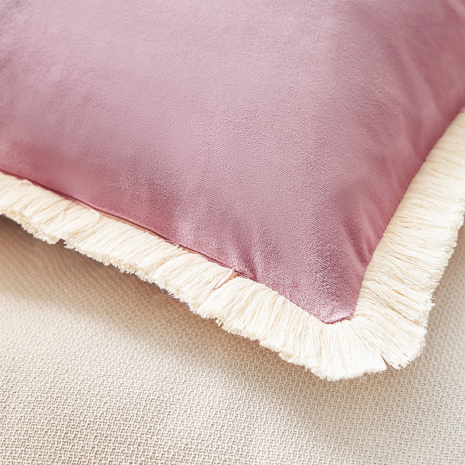 • velvet decorative throw pillow covers  with fringe border set of 2 dusty pink color