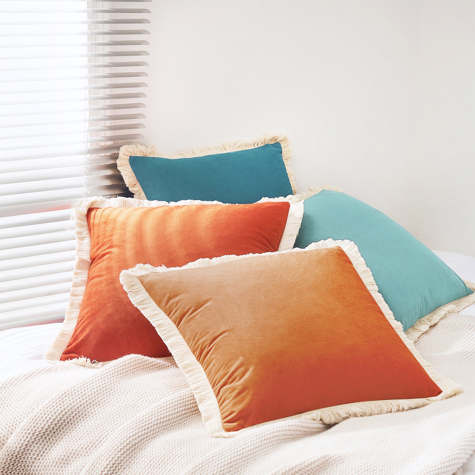 • velvet decorative throw pillow covers with fringe edge set four orange teal blue red