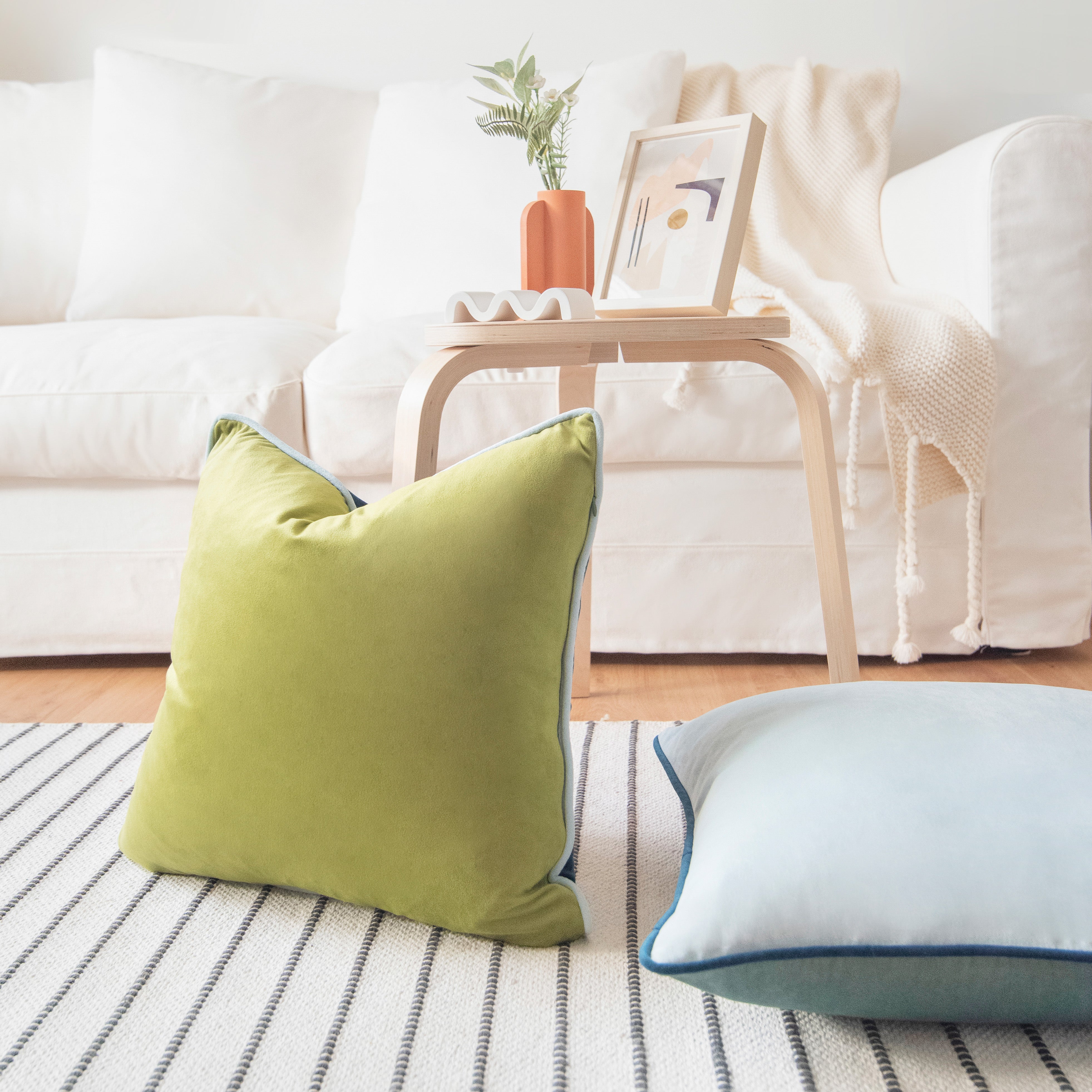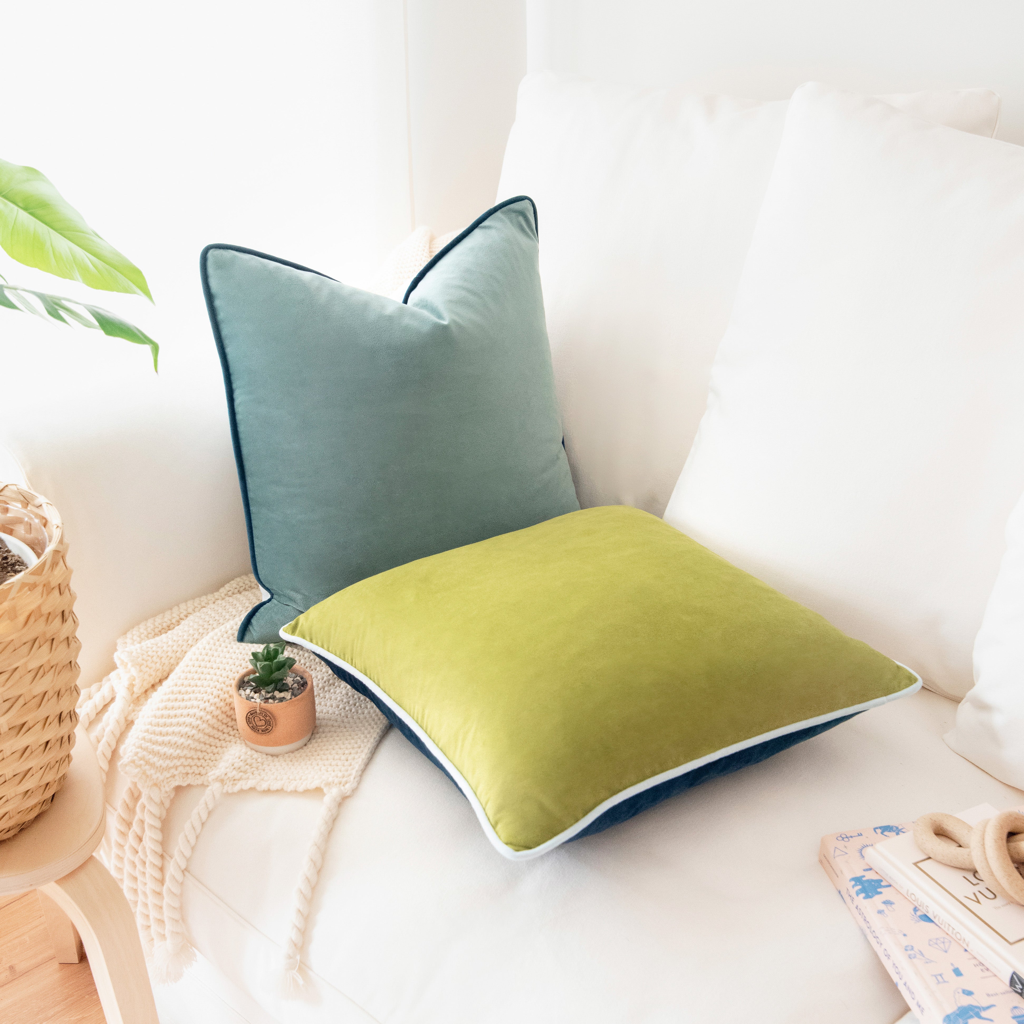 - SET OF 2: Includes 1 blue/olive green velvet pillow + 1 light blue/teal velvet pillow