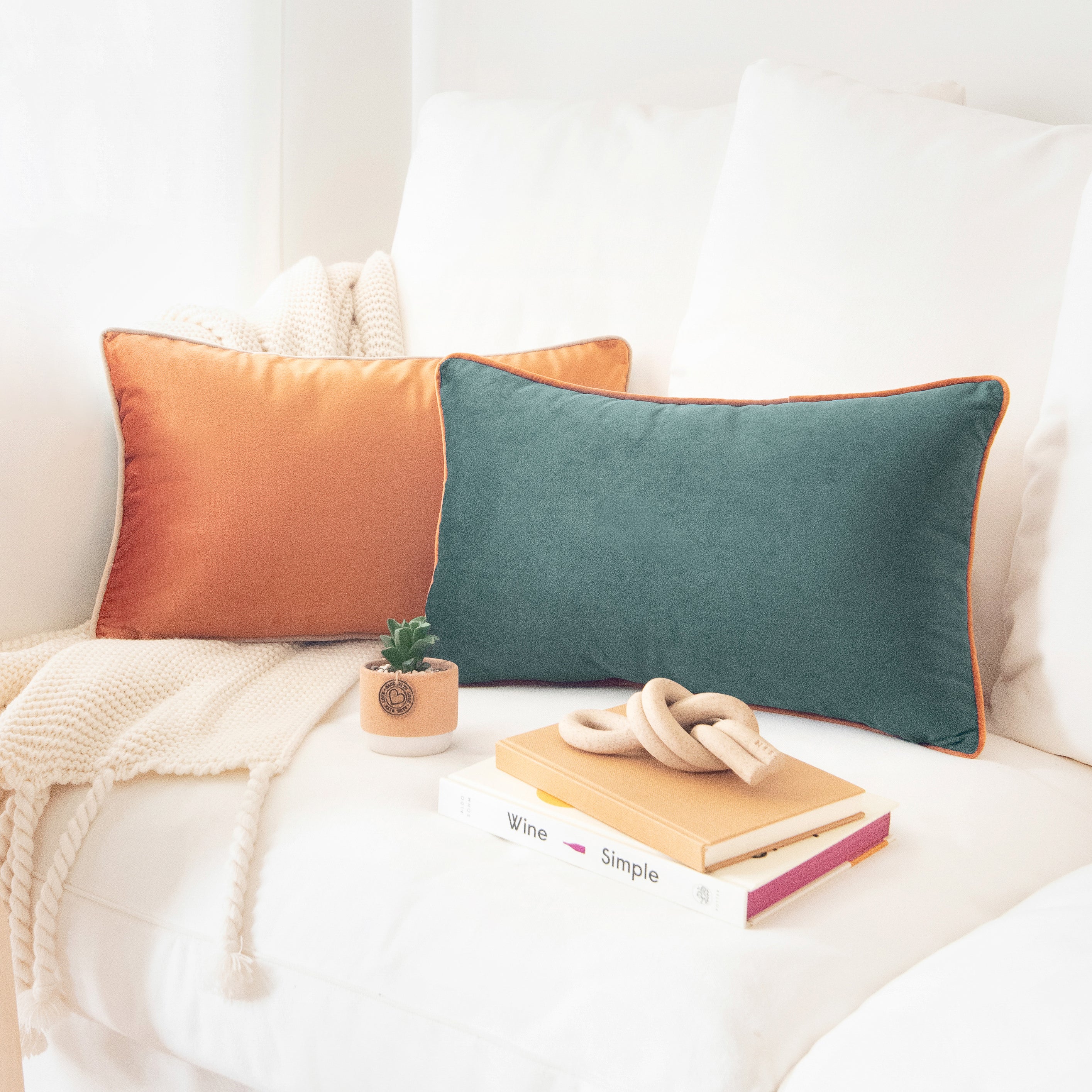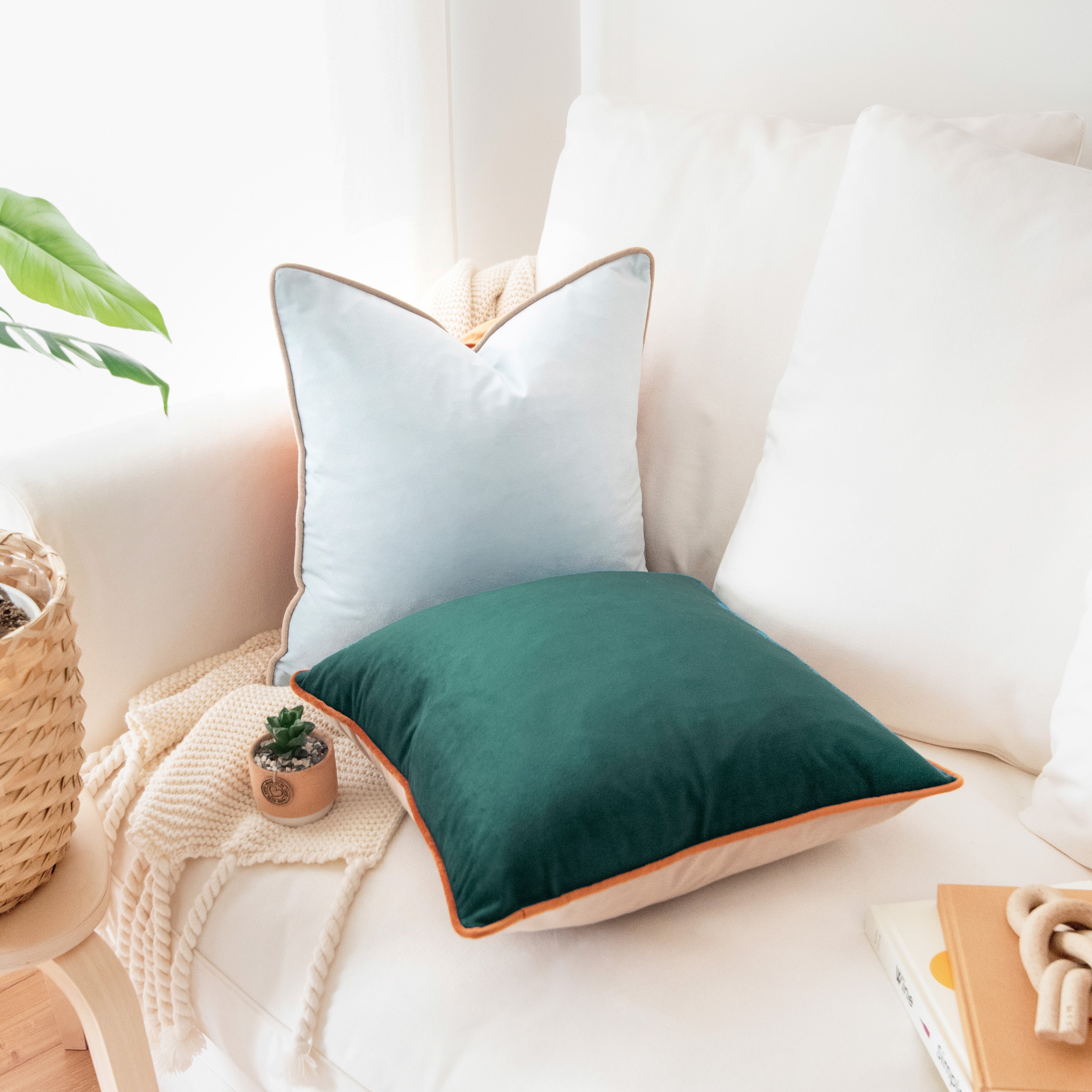 - SET OF 2: Includes 1 orange/light blue velvet pillow + 1 beige/green velvet pillow