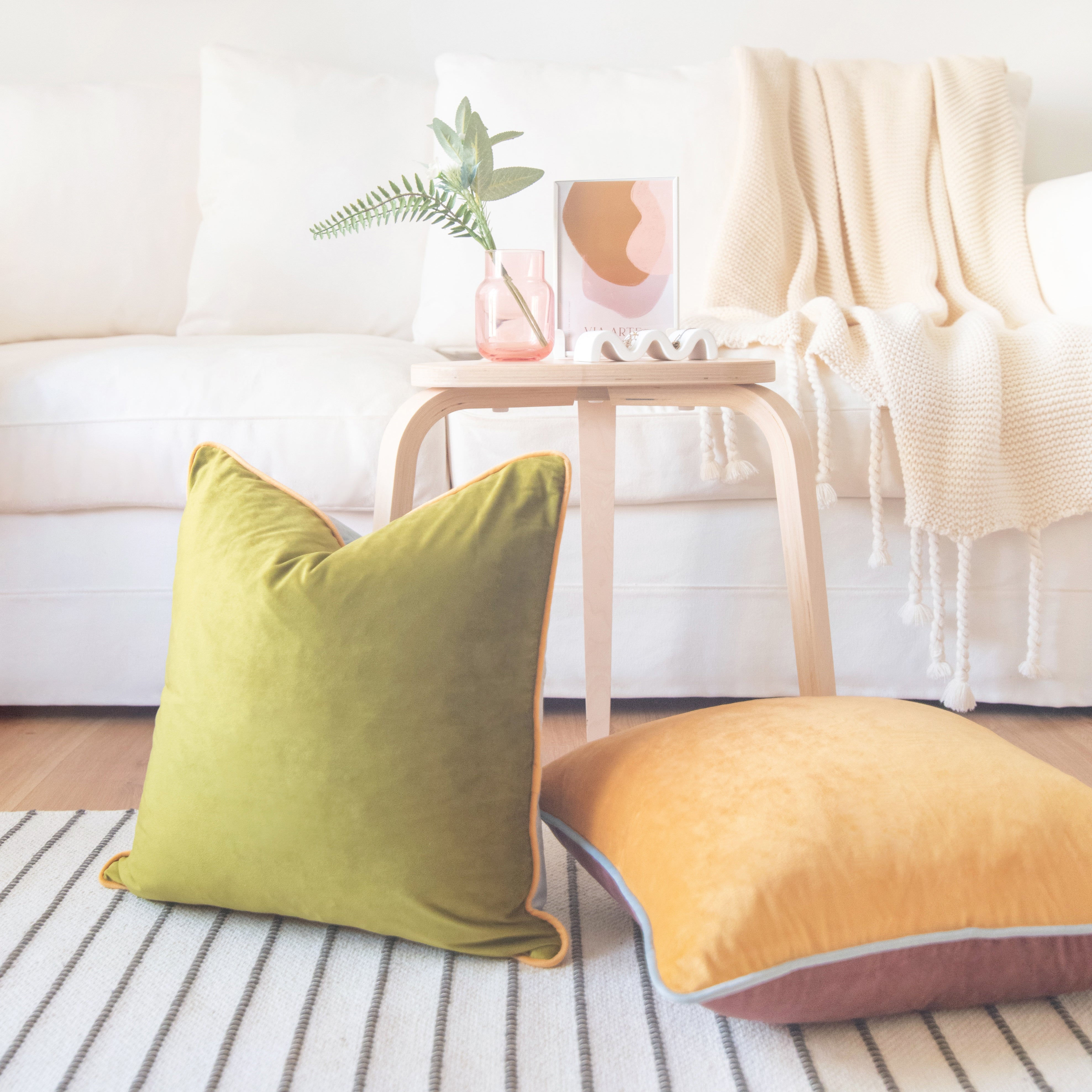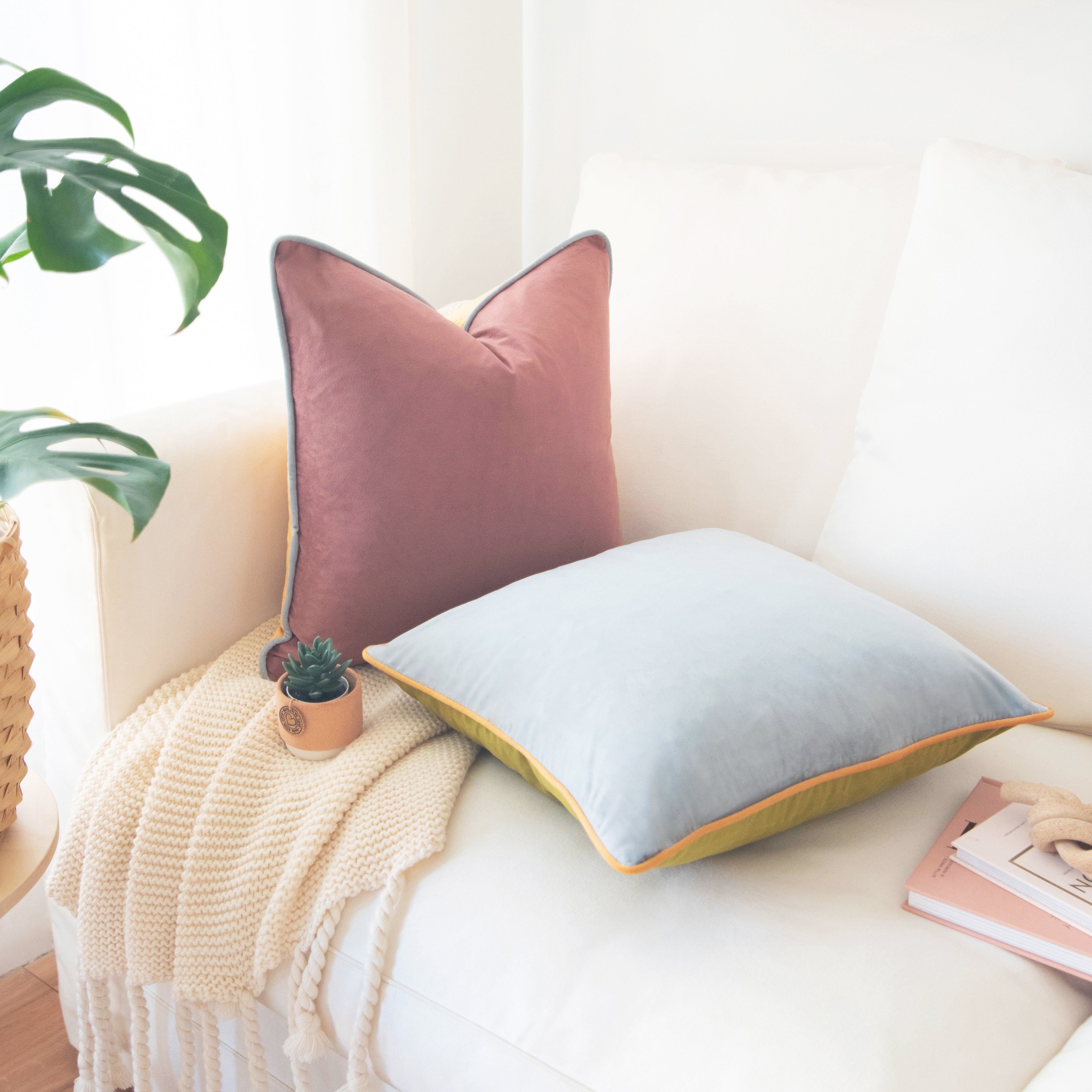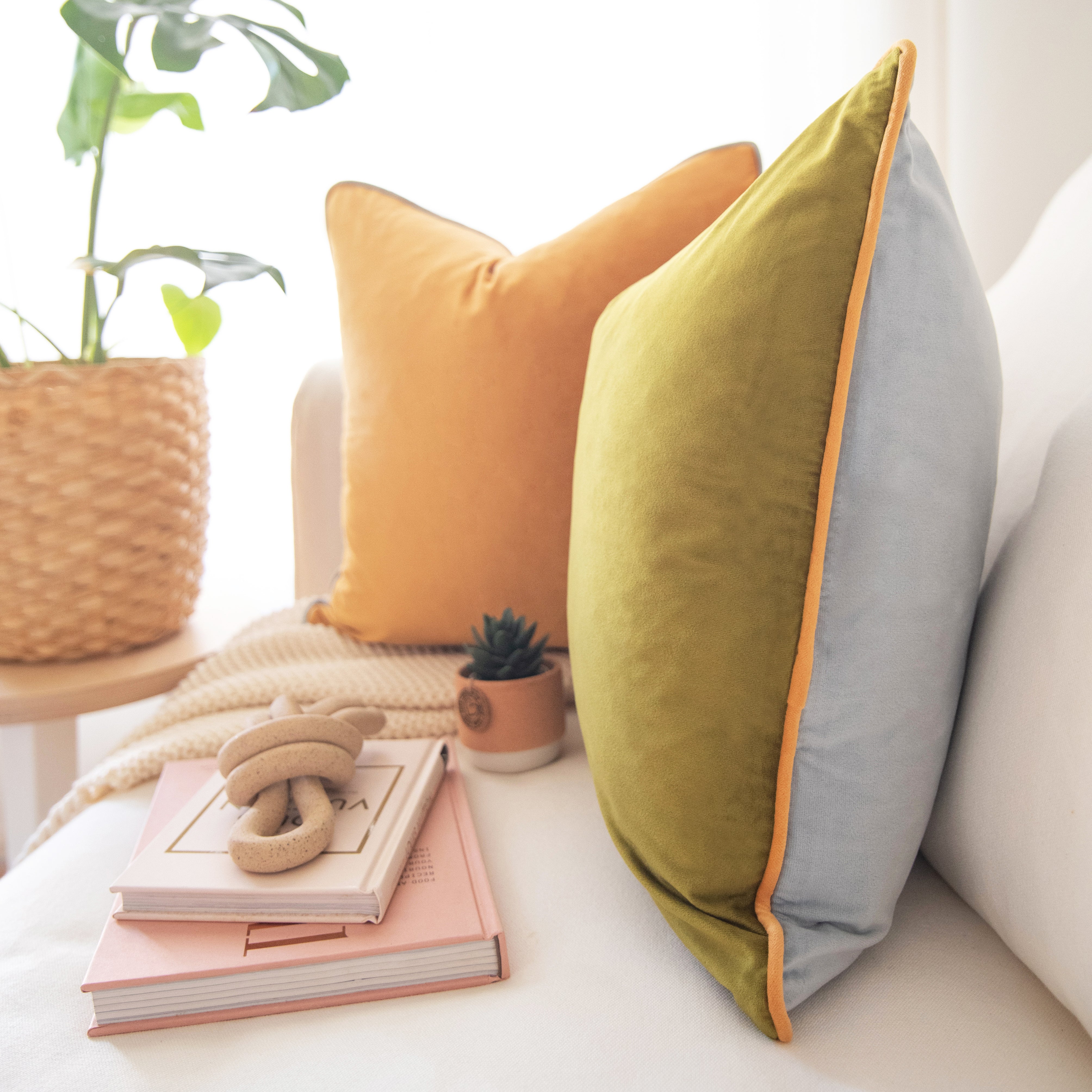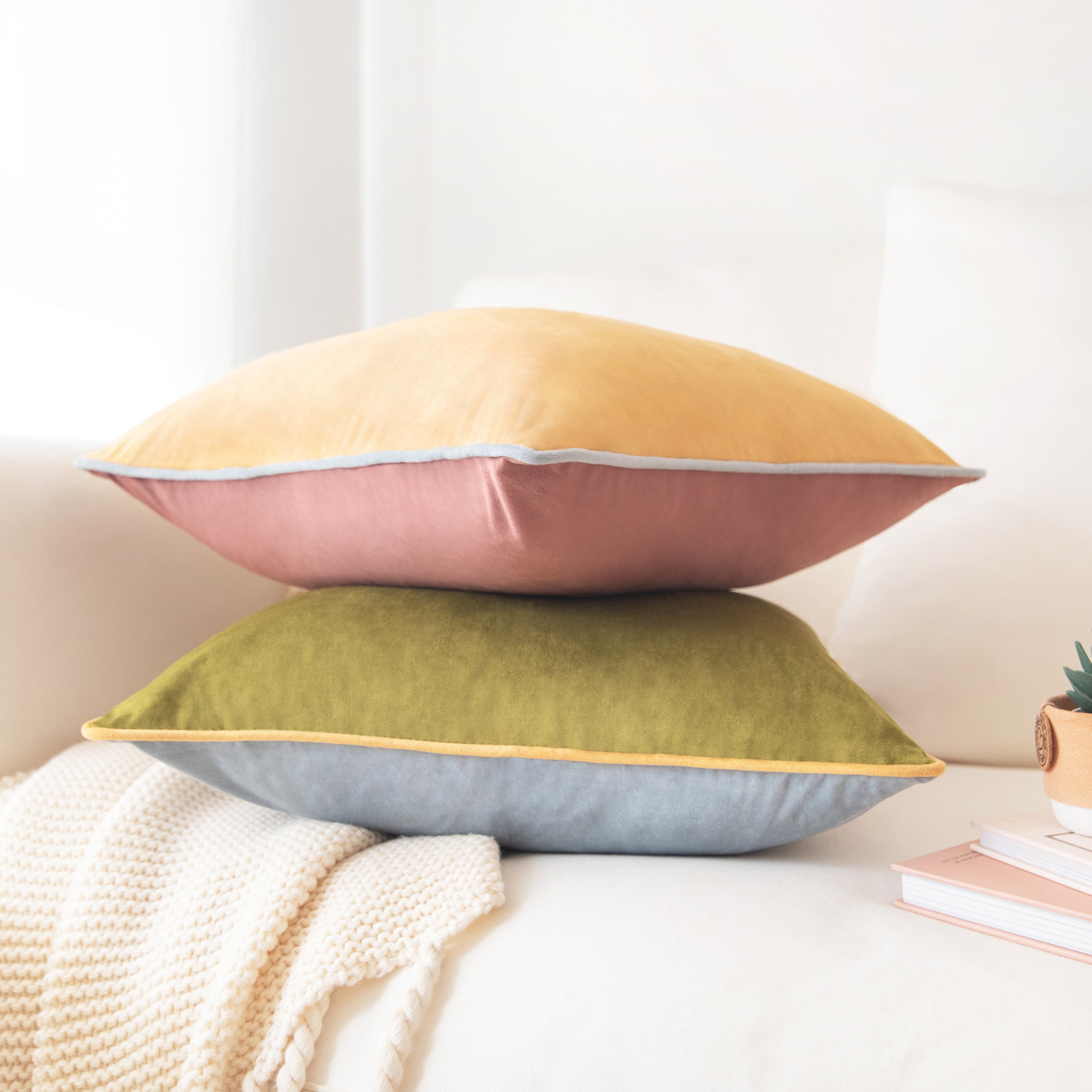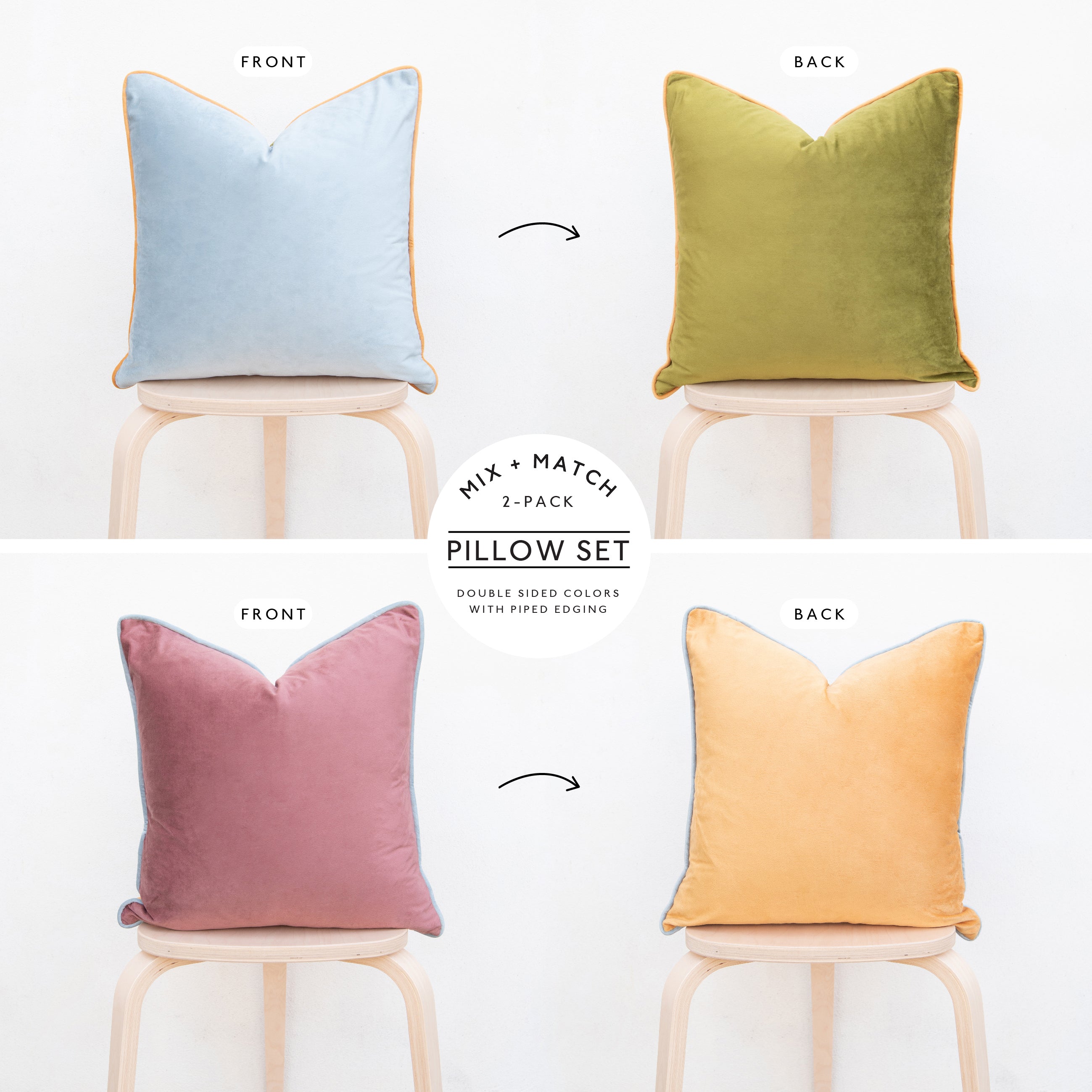 • SET OF 2: Includes 1 yellow/purple velvet pillow + 1 green/light blue velvet pillow
