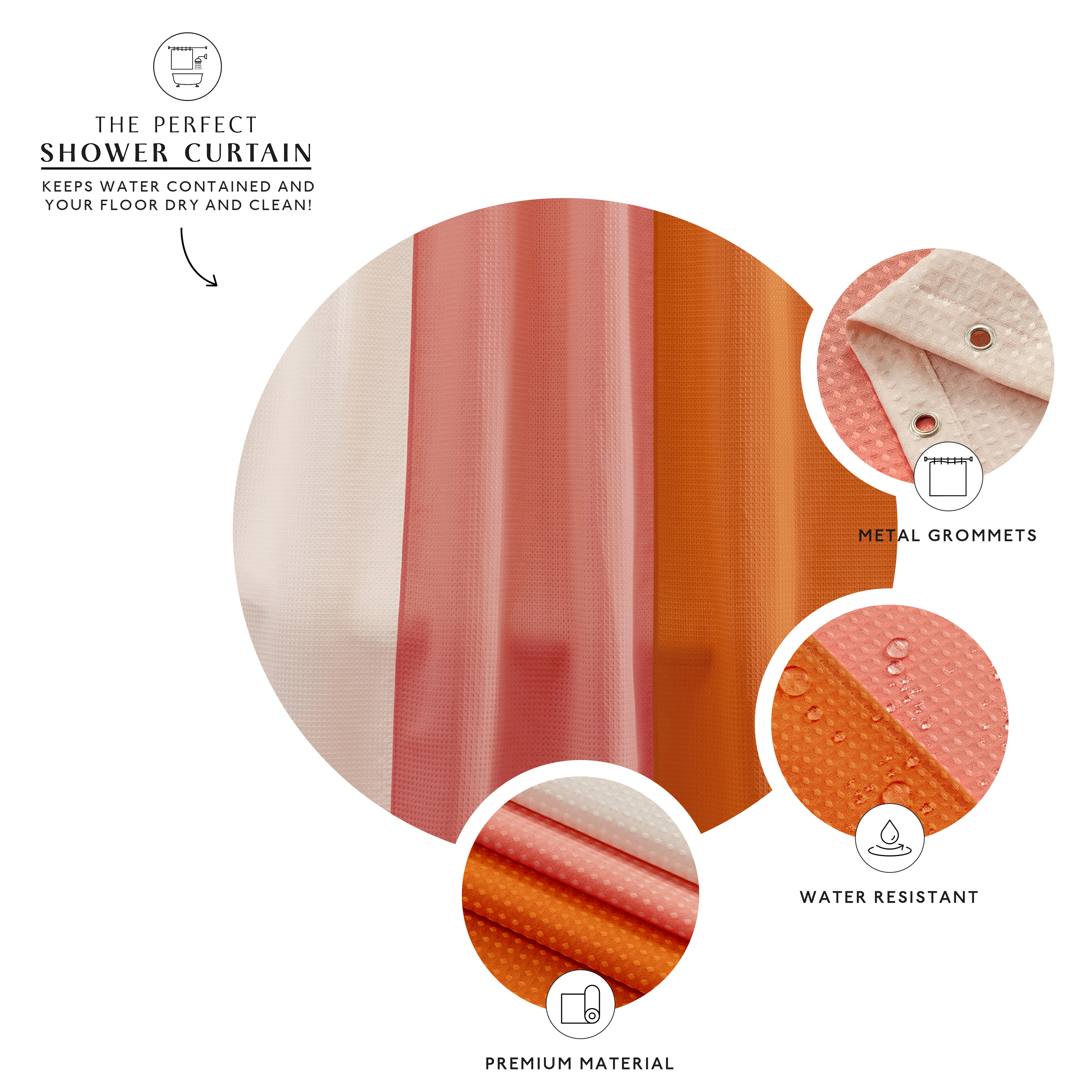 SPECIFICATIONS: Includes (1) premium 100% polyester shower curtain with elegant metal grommet holes + (12) stainless steel hooks. Color may appear more or less saturated depending on drape and light in your space