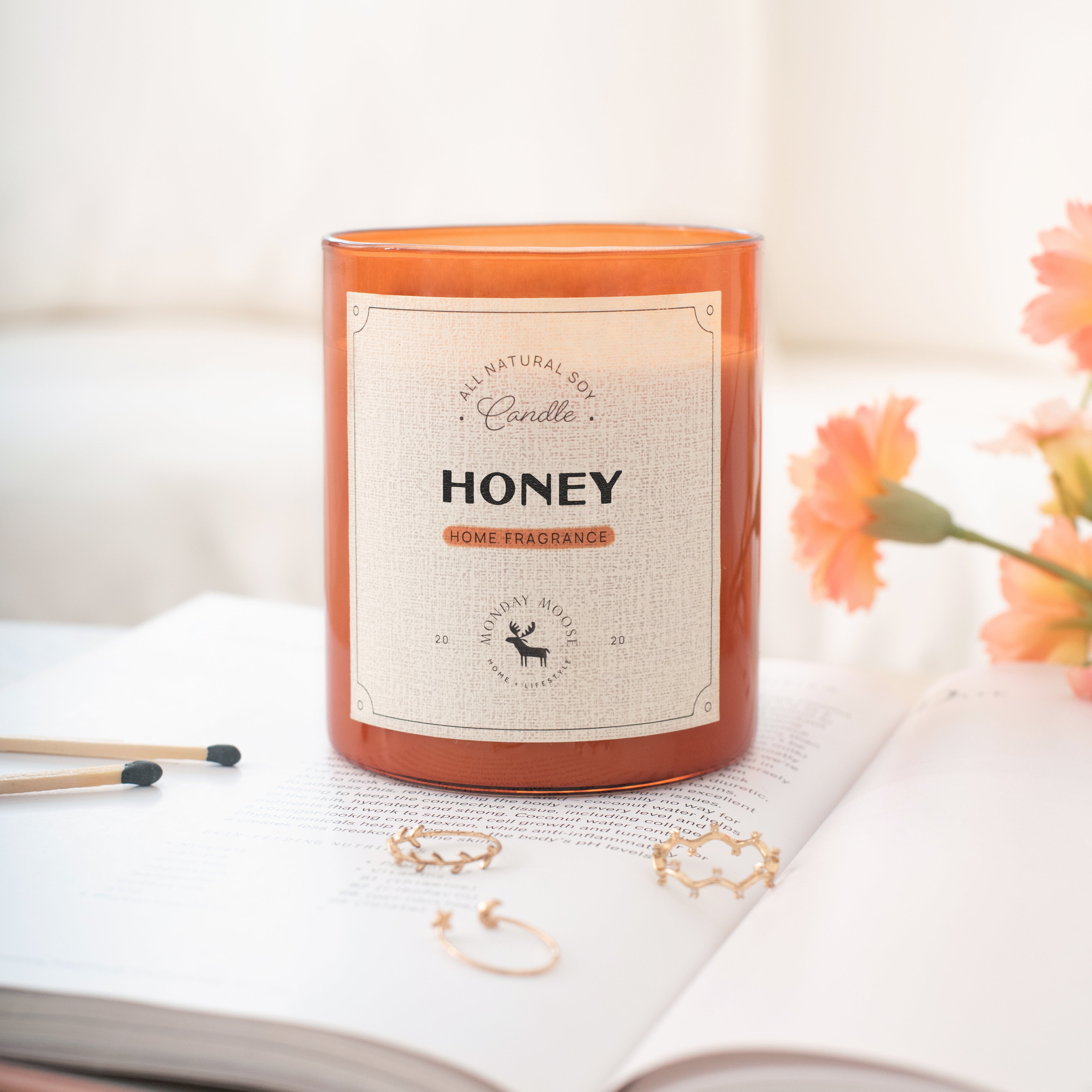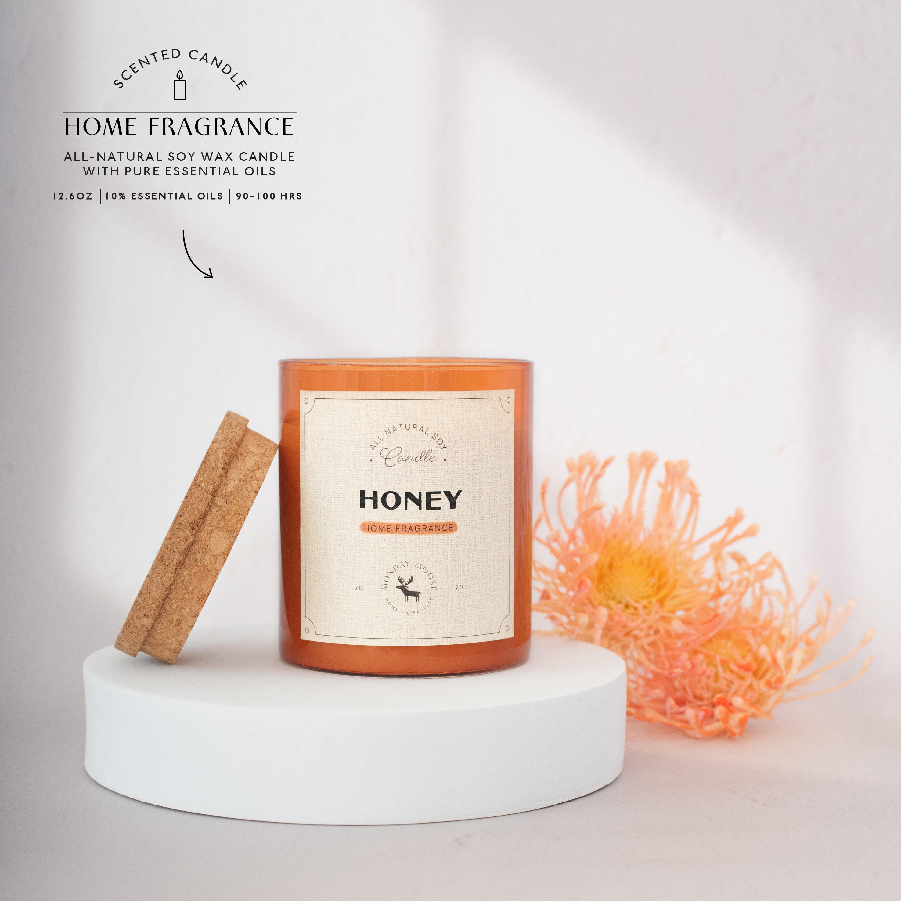 SWEET HONEY: This delightful honey scented candle is the perfect way to brighten up someone's day. Highly scented to fill your room with fragrances infused with essential oils, which ensures a memorable scent experience