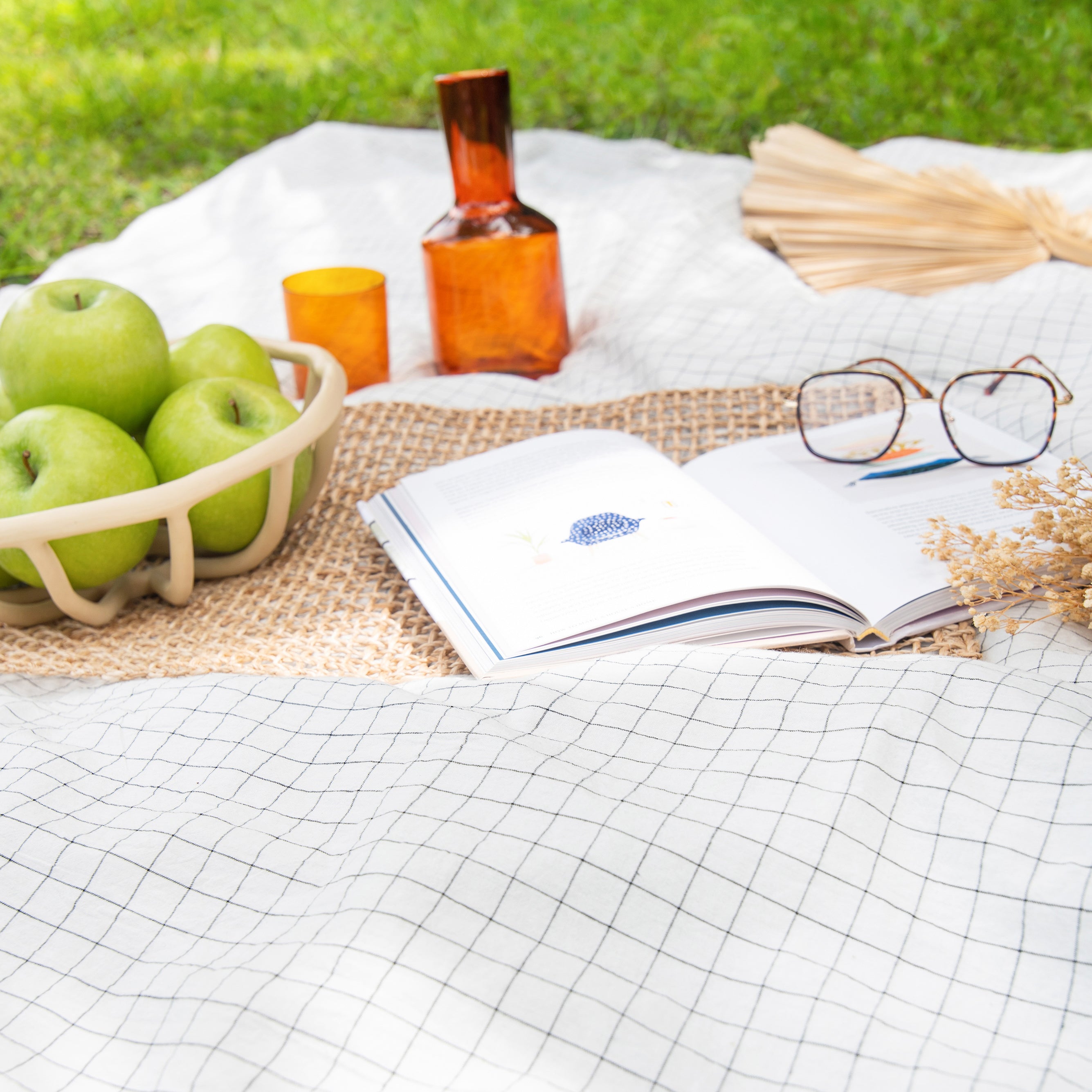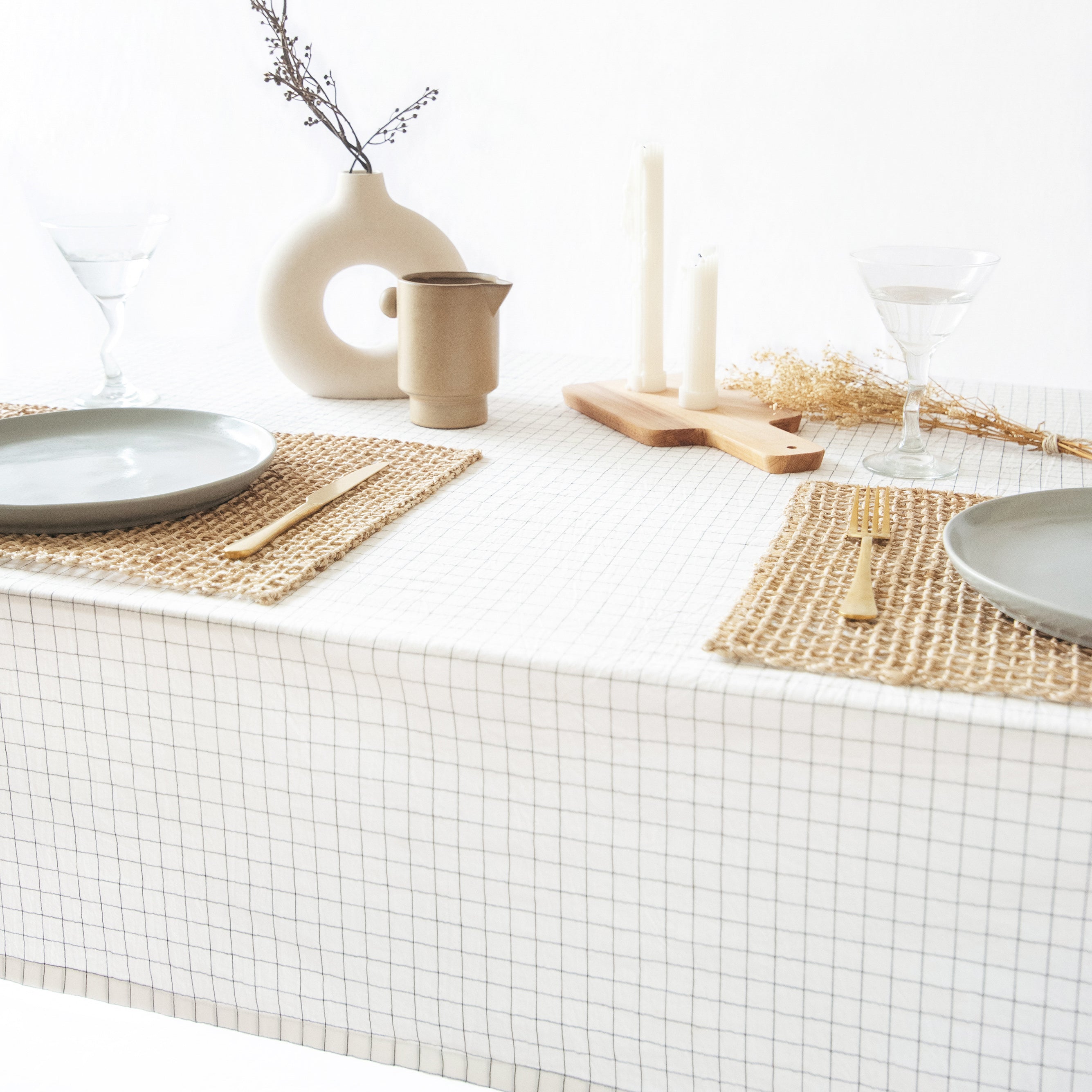 - SPECIFICATIONS: Includes (1) stonewashed cotton tablecloth with charcoal grid (windowpane) pattern