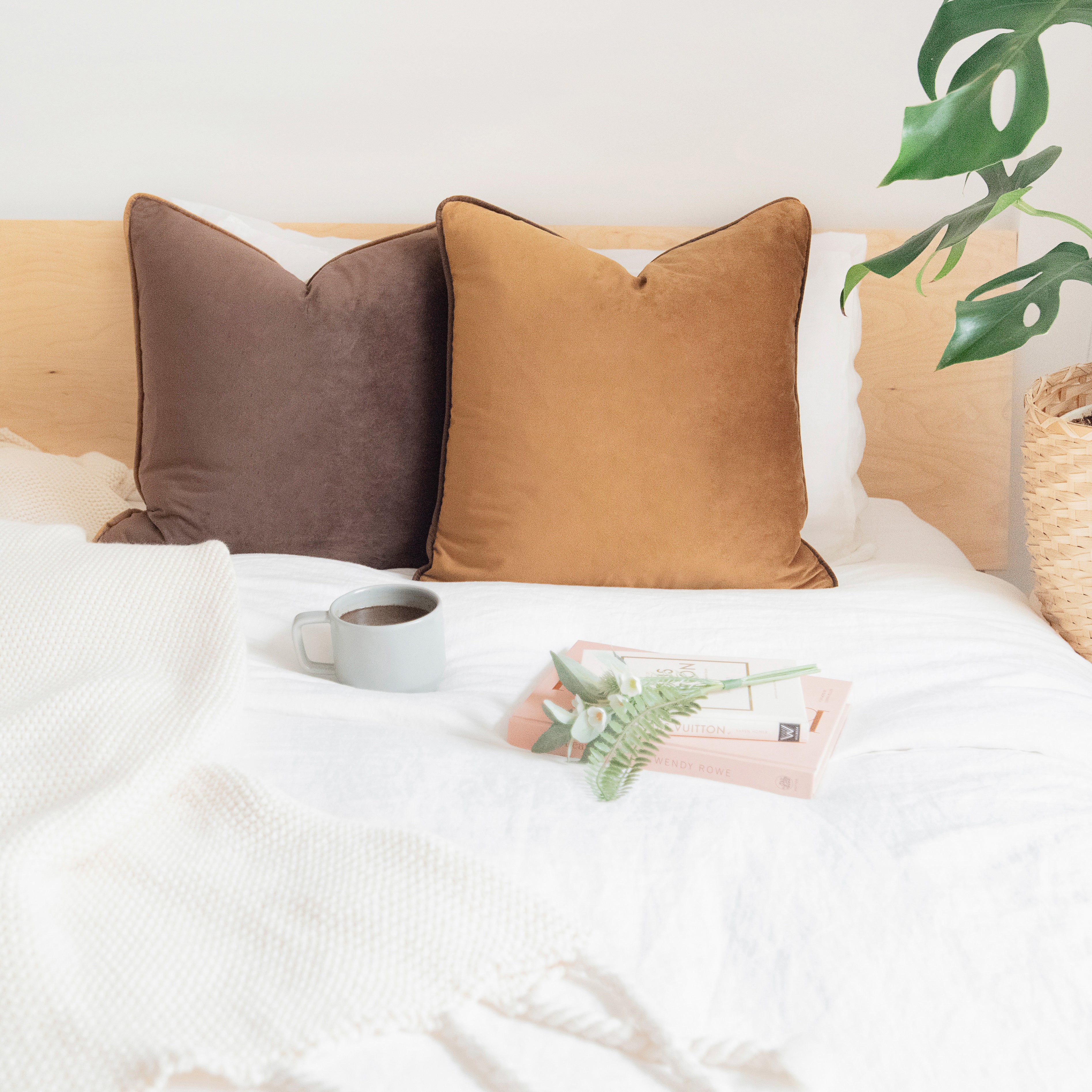 - SET OF 2: Includes 1 brown/beige velvet pillow + 1 caramel/light brown velvet pillow